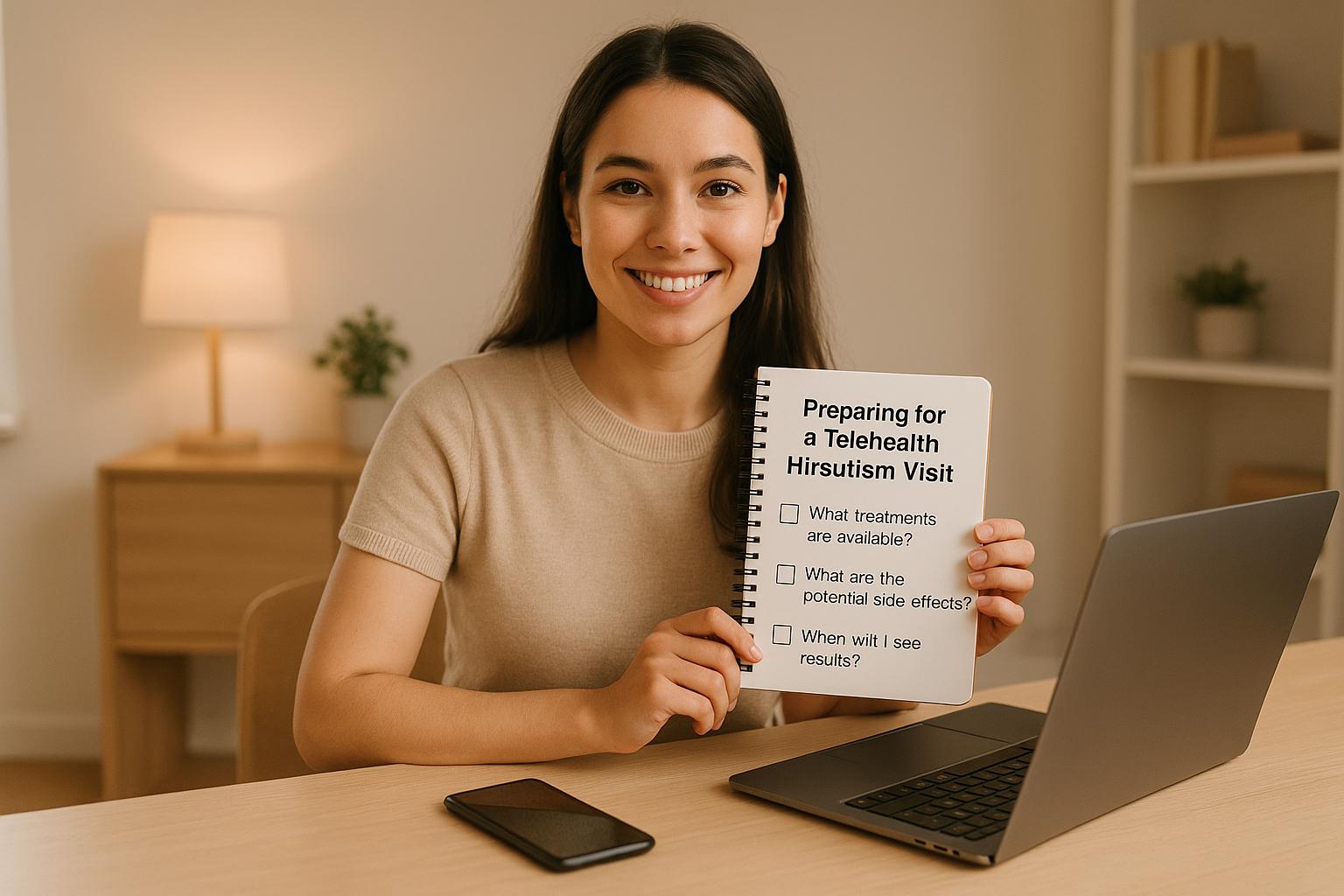 Prepare for a telehealth hirsutism visit: organize meds/history, track symptoms and photos, set a private, well-lit space, test devices, and write key questions.
