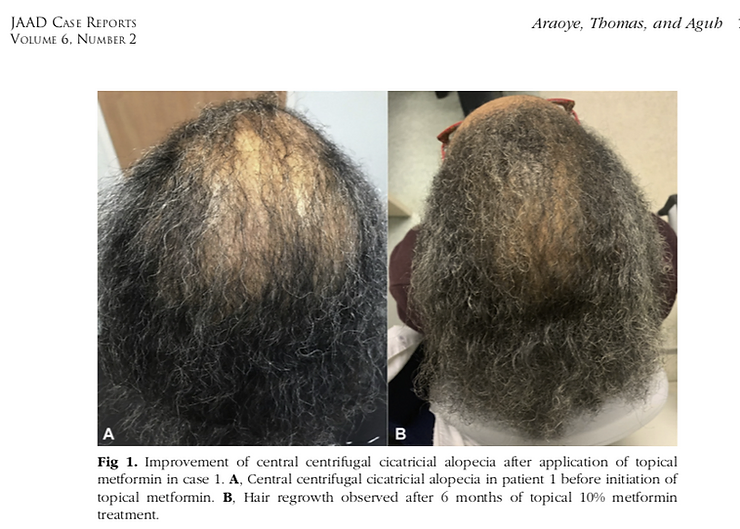 Research shows Topical Metformin with Minoxidil can help regrow hair for women with CCCA. Even when patients didn't respond to other treatments.